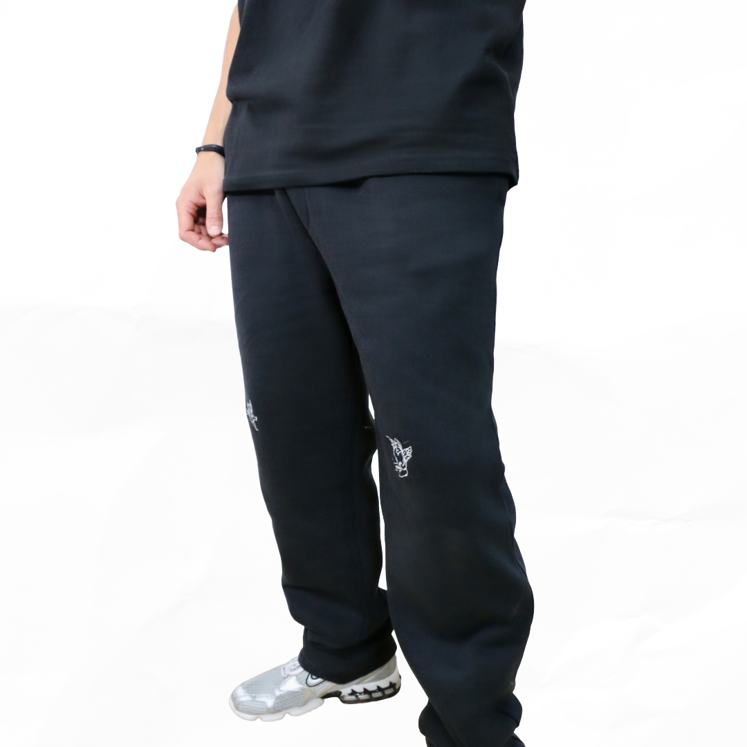 Timeless style with straight leg cut. Comfortable, loose fit for everyday wear. Mid-rise design offers balanced comfort. Classic look with embroidered cherubs above the knee and our signature Alby Ramon logo to the back.